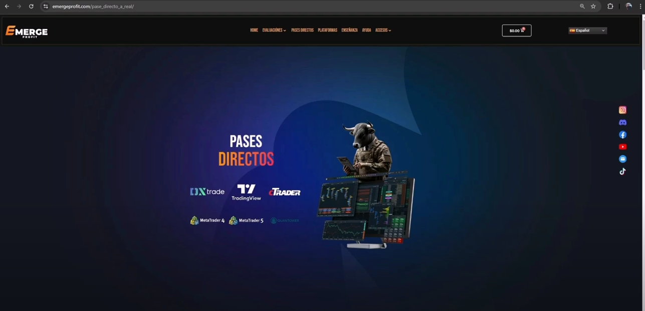 - Repartición de Ganancias : Primeros $5000 usd para trader, luego se reparten en 80% para trader y 20% para Emerge Profit .